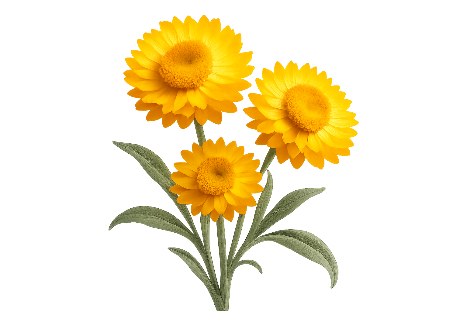 Helichrysum Flower — known as “immortelle” or “everlasting,” this golden bloom is prized for its powerful anti-inflammatory, skin-rejuvenating, and healing properties. Rich in antioxidants, Helichrysum supports cell regeneration, helps reduce scars and blemishes, and soothes sensitive or damaged skin naturally. A true skin hero in every drop!